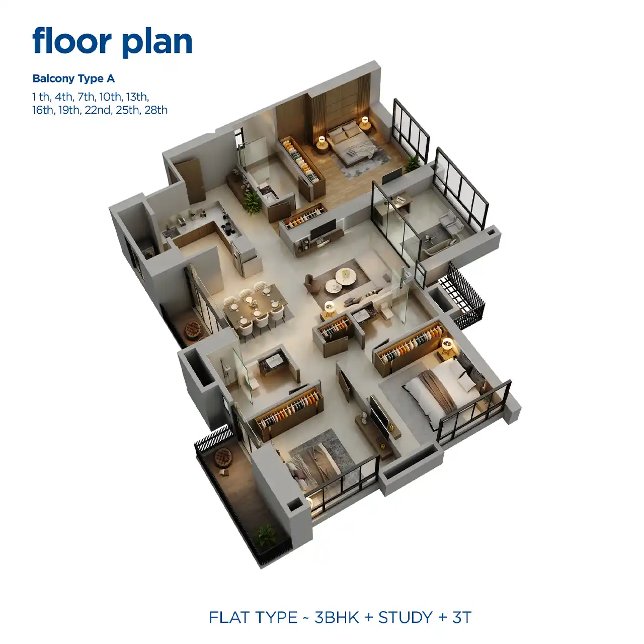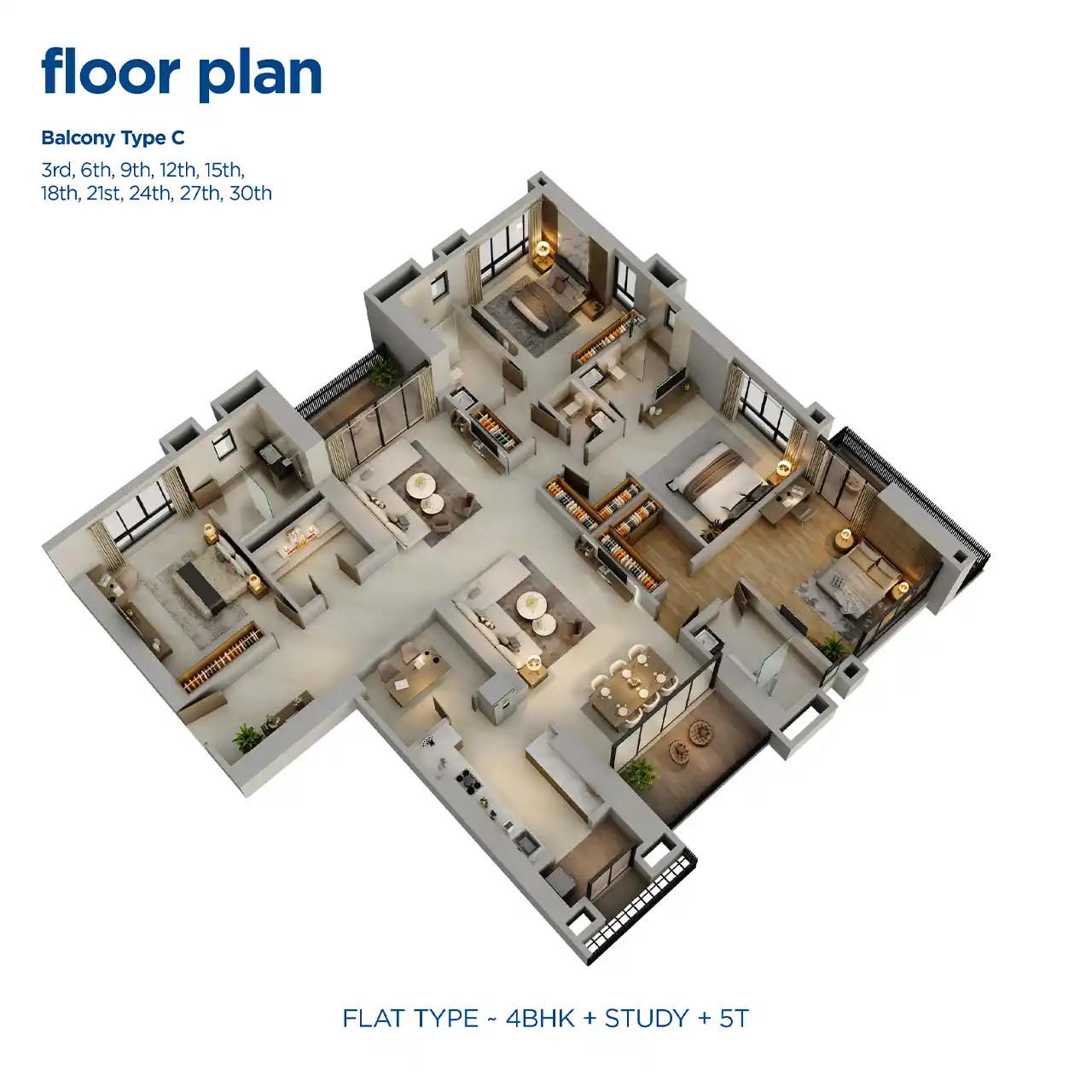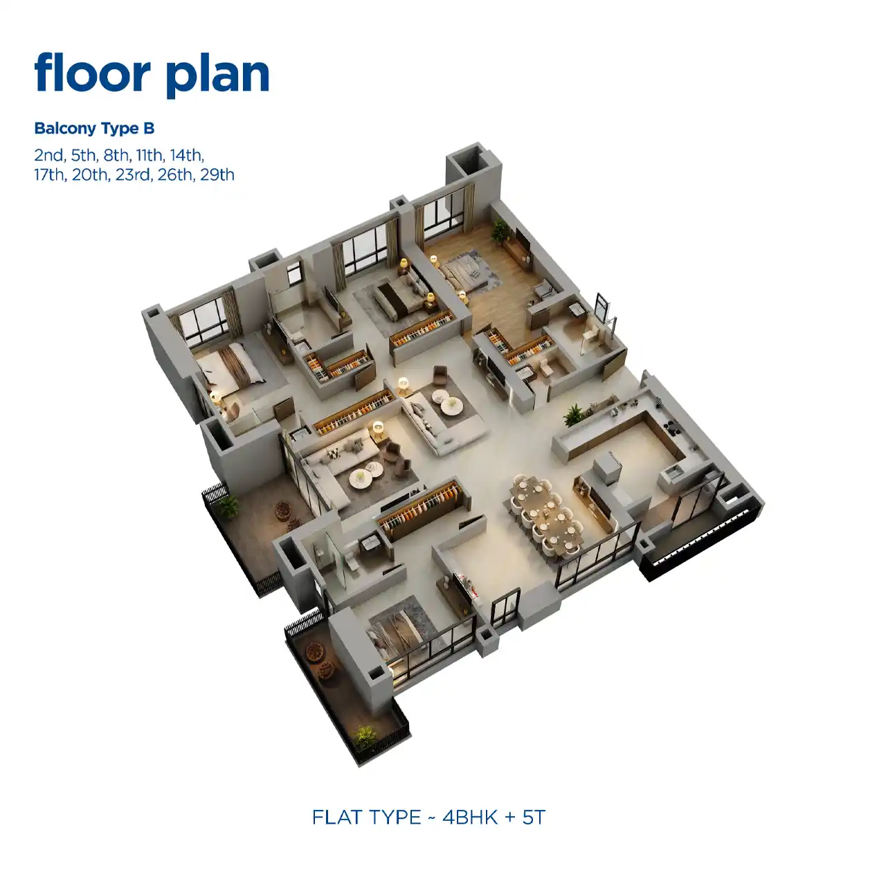 Discover thoughtfully designed floor plans at Siddha Sky Blu, offering spacious 3.5, 4, 4.5 BHK & Duplex layouts with triple-height balconies, cross-ventilated spaces, and Vaastu-compliant design—crafted to maximize comfort, elegance, and functionality in every home.